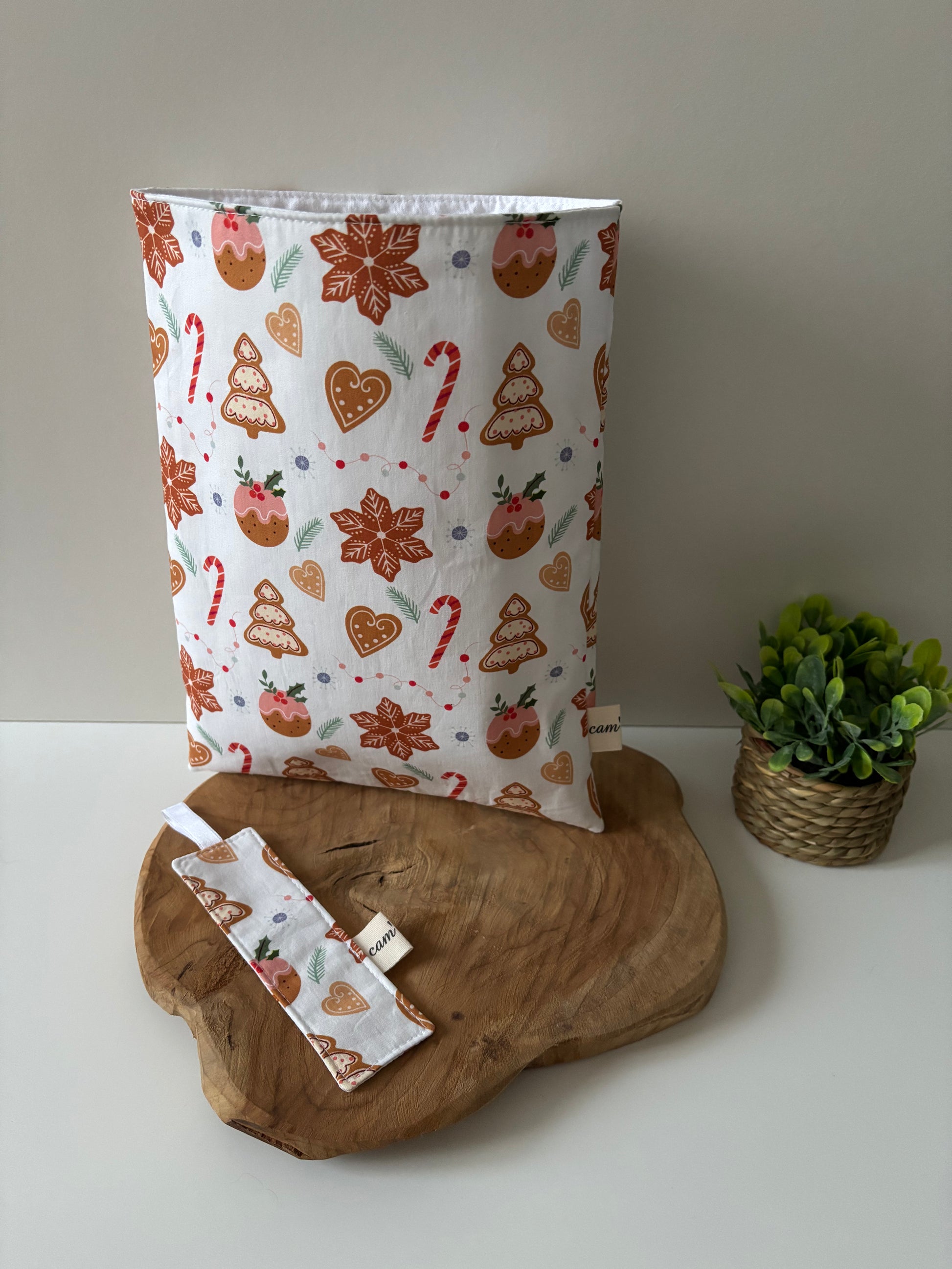 Chaque coffret réunit une pochette à livre cousue à la main + un marque-page textile assorti, pour accompagner les amoureux de lecture pendant toute la saison hivernale.
